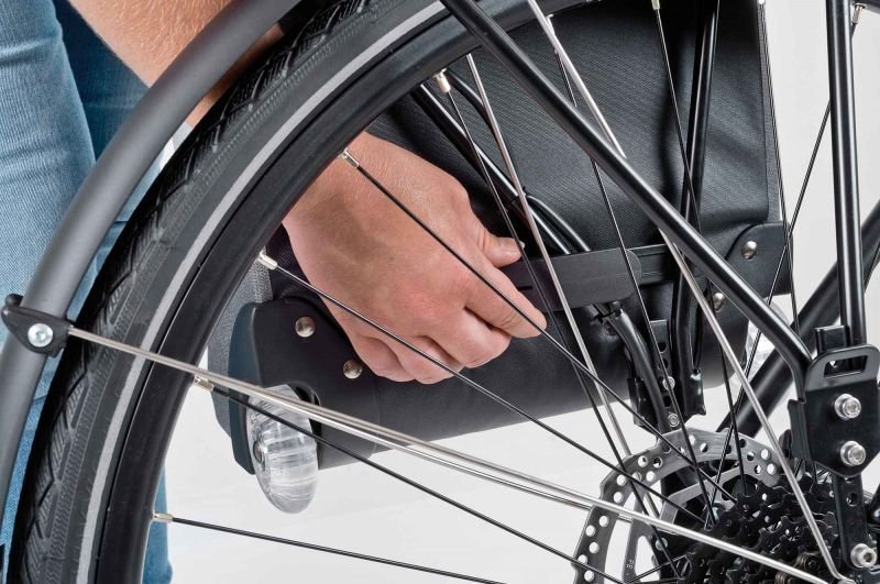 - Teleskopgriff verschwindet beim Anbringen am Fahrrad hinter dem Reißverschluss
