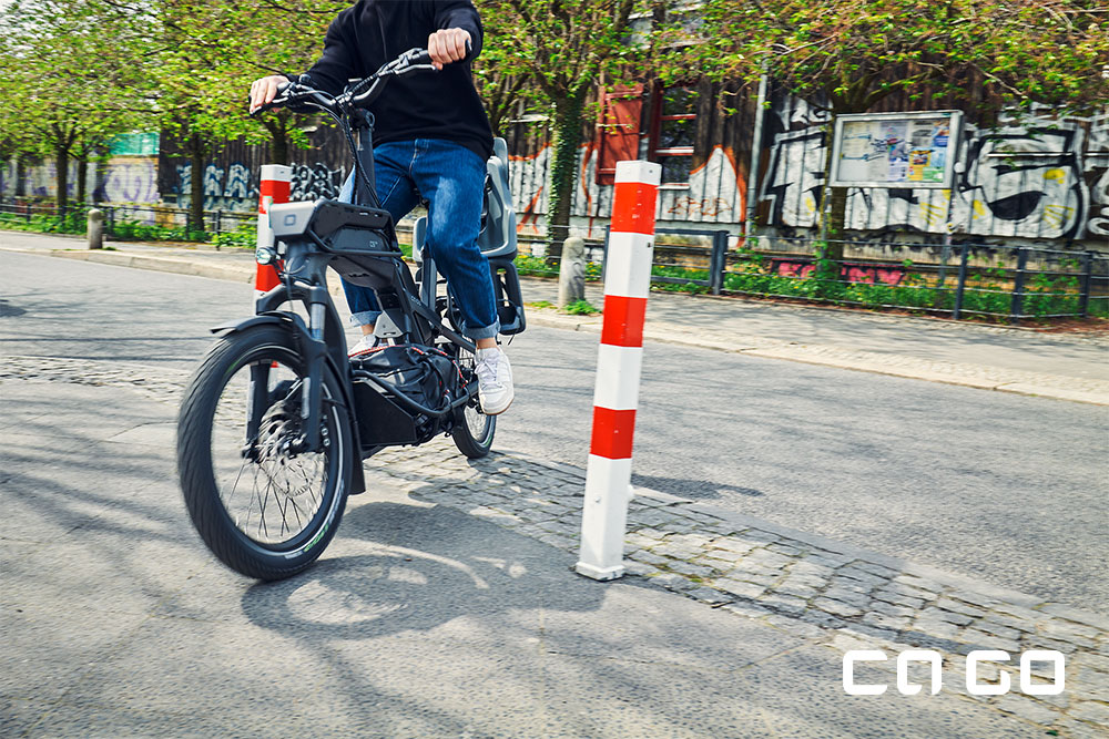 Das Center Rack des Ca Go CS bietet nicht nur Stauraum, sondern auch einen tiefen Schwerpunkt zwischen den Laufrädern. Dies sorgt für ein äußerst kontrollierbares und dennoch wendiges Fahrverhalten, unabhängig davon, ob das Fahrzeug beladen ist oder nicht.