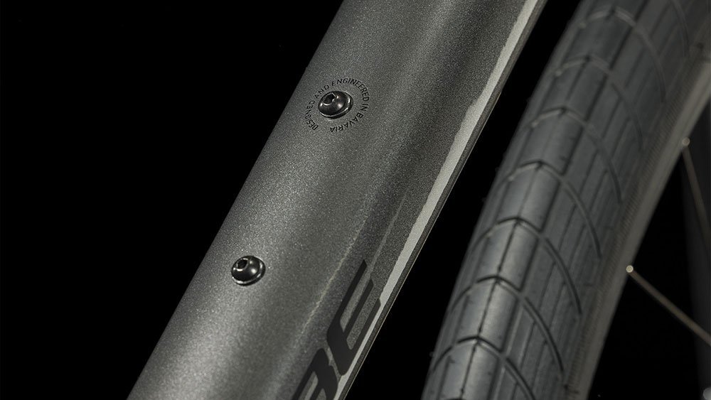 Die Fahrradkuriere der 80er und 90er waren nicht ohne Grund mit Mountainbikes in der City unterwegs, insofern hat CUBE sich bei der Entwicklung des Hyde auch an ihren 29er Hardtails orientiert. Doppelt konifizierte Aluminiumrohrsätze bilden eine stabile, haltbare, leichte und agile Rahmenstruktur, die dank nahtlos integrierter Montagepunkte die individuelle Nachrüstung mit Gepäckträger und Schutzblechen ermöglicht. Außerdem bietet sie genügend Platz für zwei Trinkflaschenhalter – vor allem auf längeren Touren ist man dadurch immer optimal mit Flüssigkeit versorgt. Schließlich komplettiert eine schlanke, steife Gabel den Rahmen, ihr Spezialgebiet: ein knackiges, präzises Lenkverhalten in Kombination mit wenig Gewicht und einem eleganten Look.