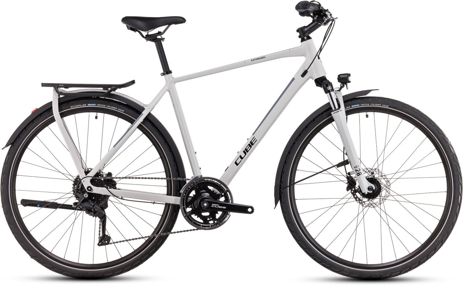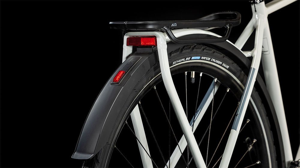 Mit der brandneuen, einfach zu bedienenden Cues 2×9-fach Schaltung von Shimano wechselst du zuverlässig und sicher von Gang zu Gang. Kraftvolle hydraulische Scheibenbremsen sorgen für sichere Bremsmanöver, selbst bei Nässe. Apropos Nässe: CUBE hat dem Bike neben einem Seitenständer und Lichtern auch Schutzbleche spendiert. On top gibt’s eine komfortable Federgabel, die Buckel und Löcher auf der Strecke wegschluckt wie nichts. Also, wohin soll die nächste Tour gehen?