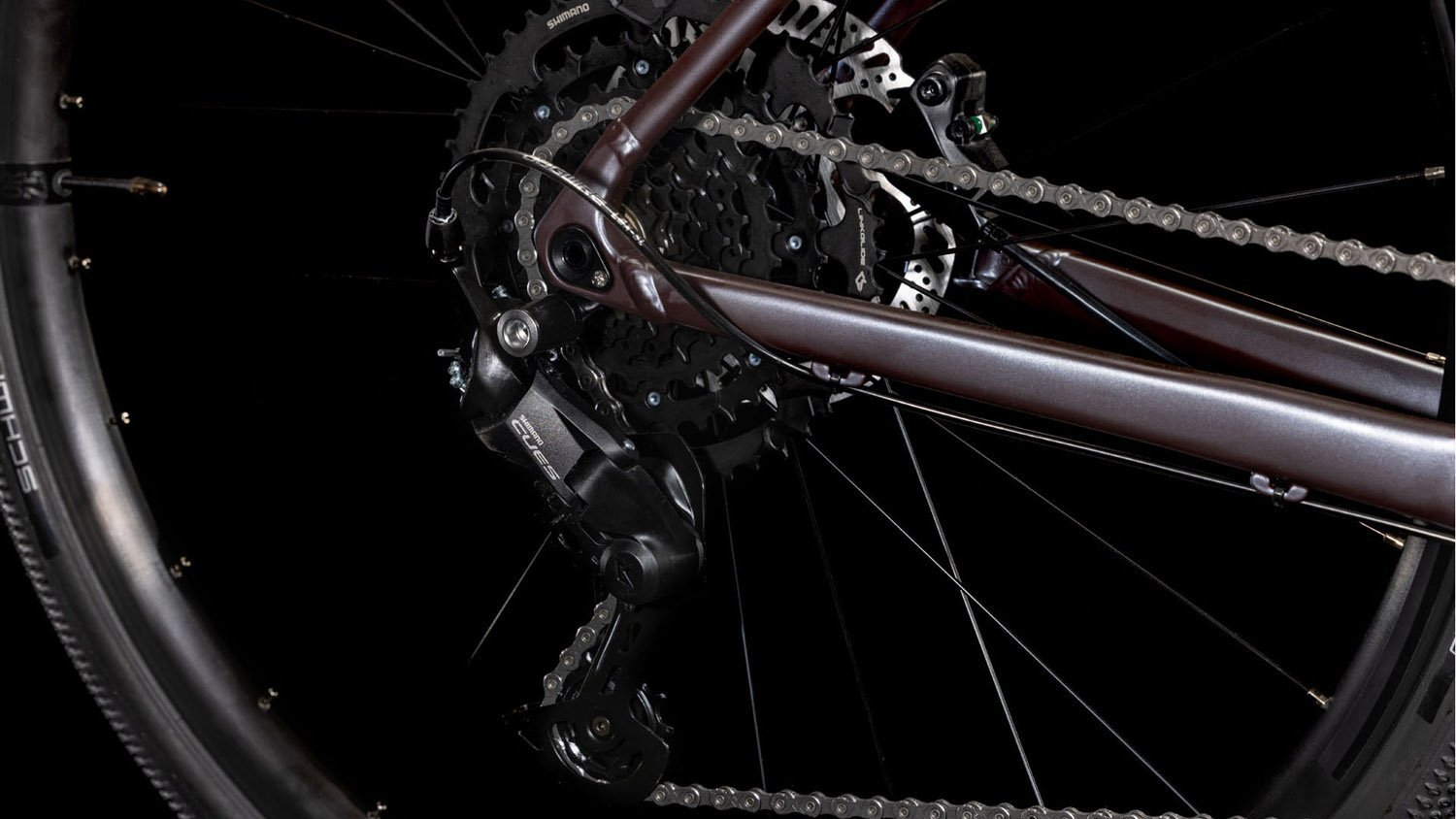 Der Trapezrahmen des vielseitigen Nulane sieht vielleicht unspektakulär aus, dabei ist er in Sachen Komfort und einfaches Handling kaum zu toppen – leichtes Auf- und Absteigen inklusive. Doch das Chassis überzeugt auch beim Blick auf die Details, beispielsweise die superleichten, doppelt konifizierten Aluminiumrohre und die Vollcarbongabel – beides Garanten für geringes Gewicht. Außerdem gibt es Montagepunkte zum unkomplizierten Nachrüsten von Schutzblechen und Gepäckträgern an der Front und am Heck. Technischer Kniff: Dass wir vorne wie hinten eine Steckachse verbaut haben, sorgt für ein sicheres, zuverlässiges Handling, egal ob mit Gepäck an Bord oder ohne.