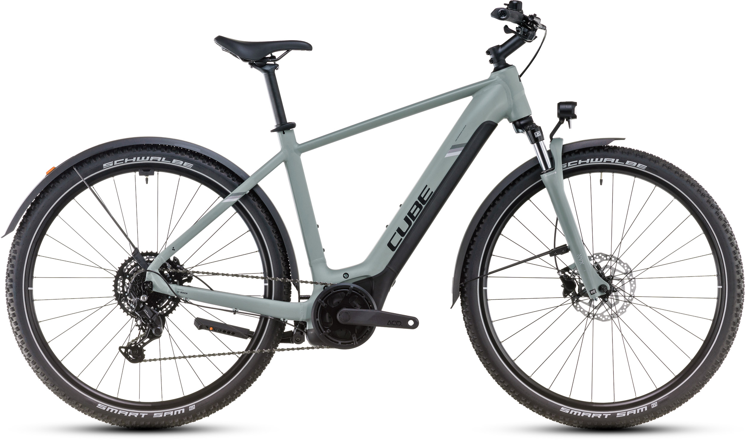 Womit der Rahmen des Nuride Hybrid Performance als Erstes begeistert, ist seine tolle Optik. Denn CUBE hat den leistungsstarken Bosch Performance Motor mit Bosch Smart System und 500 Wh PowerTube Akku so formschön ins Design integriert, dass sie kaum auffallen. Was aber auffällt, ist der tolle Support im Vorwärts. Es kommt aber noch besser: Das Efficient Comfort Geometry sorgt gemeinsam mit der Federgabel mit 63 mm Federweg für ein komfortables und zugleich kontrolliertes Fahrgefühl, selbst auf ruppigen Wegen. In der Sattelklemme wurde ein praktisches Mini-Tool versteckt. Last, but not least das Zubehör – dank Beleuchtung, Seitenständer und Schutzblechen ist dieses E-Bike der perfekte Partner für sämtliche Zweiradabenteuer, egal wohin die Reise geht!