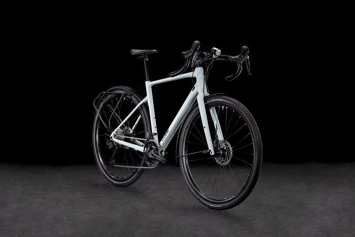 Lust auf Abenteuer? Na, am Bike soll’s nicht liegen! Das Cube Nuroad FE bietet genügend Reifenfreiheit für breite Reifen, außerdem ein Cyclocross-inspiriertes Handling und ein Komplettset an praktischem Zubehör. Seine leichten, griffigen 40 mm Schwalbe Reifen rollen komfortabel dahin, egal wohin die Reise geht, dabei federt die Vollcarbongabel sämtliche Vibrationen von Unebenheiten auf holprigen Strecken gekonnt ab. Weil wir eine GRX 2×12-Gang Schaltung und wetterunabhängig kraftvoll verzögernde Scheibenbremsen von Shimano verbaut haben, lässt sich das Bike zu jeder Zeit perfekt kontrollieren. Supervielseitig und praktisch: das integrierte Zubehör, bestehend aus Gepäckträger, Schutzblechen, Seitenständer und Beleuchtungssystem.