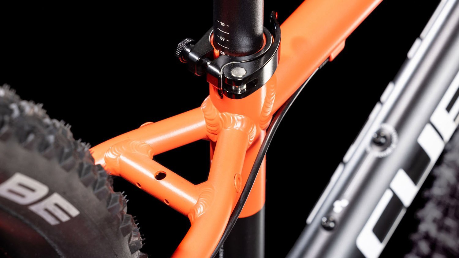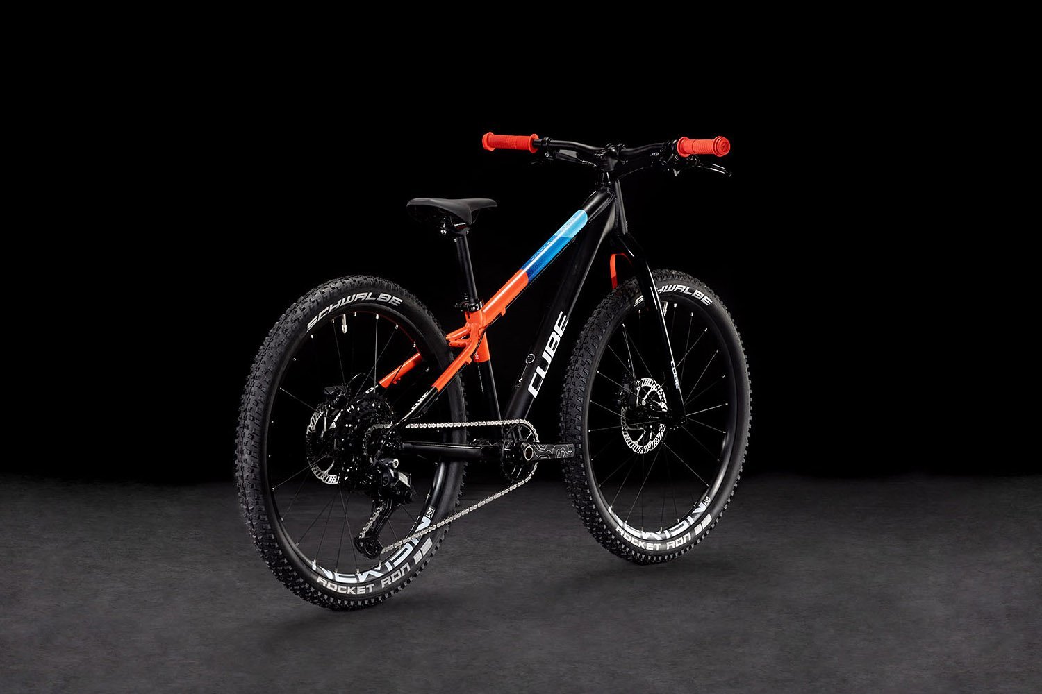 Der Reaction 240 Pro besteht aus denselben hitzebehandelten 6061er-Aluminiumrohrsätzen wie die Performance-Bikes für Erwachsene. Und CUbe hat deren Form für das optimale Verhältnis von Steifigkeit zu Gewicht – und für viel Reifenfreiheit – mit demselben mechanischen Formverfahren angepasst. Durch die Vollcarbongabel mit Steckachse konnte noch einmal an Gewicht eingespart werden. Zudem sorgen Aufnahmen für Scheibenbremsen und die clevere Positionierung der Kabelzüge für noch mehr Sicherheit und eine höhere Bremsleistung. Ein weiteres Highlight ist das austauschbare Schaltauge, wordurch die Eltern junger Shredder nach einem kleinen Sturz nicht gleich den ganzen Rahmen kostspielig reparieren lassen müssen.