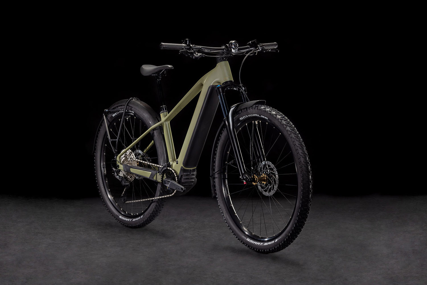 Der Rahmen des Reaction Hybrid Allroad steckt voller cleverer Features – und damit meint Cube nicht nur die integrierten Schutzbleche, den Gepäckträger, die Beleuchtung und den Seitenständer. Sein starker PowerTube Akku und der Bosch CX Motor sind so formschön, sauber und sicher ins schlanke, elegante Design integriert, dass sie kaum auffallen. Außerdem ist das Chassis PowerMore-ready, das heißt, es können bei Bedarf weitere 250 Wh mitfahren. Dazu betonen die integrierte Sattelklemmung und die interne Zugverlegung die cleane Optik. Was noch? Ein UDH für einfache Ersatzteilverfügbarkeit, eine Aufnahme für die Kettenführung und die Möglichkeit, ACID Schutzbleche nachzurüsten. Last, but not least hat Cube dank des Size Split System für so gut wie jeden Fahrer die perfekte Passform im Angebot. Fazit: Alles da, was wichtig ist – für maximalen Fahrspaß!