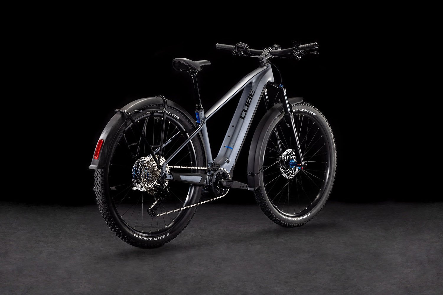 Der Rahmen des Reaction Hybrid Allroad steckt voller cleverer Features – und damit meint Cube nicht nur die integrierten Schutzbleche, den Gepäckträger, die Beleuchtung und den Seitenständer. Sein starker PowerTube Akku und der Bosch CX Motor sind so formschön, sauber und sicher ins schlanke, elegante Design integriert, dass sie kaum auffallen. Außerdem ist das Chassis PowerMore-ready, das heißt, es können bei Bedarf weitere 250 Wh mitfahren. Dazu betonen die integrierte Sattelklemmung und die interne Zugverlegung die cleane Optik. Was noch? Ein UDH für einfache Ersatzteilverfügbarkeit, eine Aufnahme für die Kettenführung und die Möglichkeit, ACID Schutzbleche nachzurüsten. Last, but not least haben wir dank unserem Size Split System für so gut wie jeden Fahrer die perfekte Passform im Angebot. Fazit: Alles da, was wichtig ist – für maximalen Fahrspaß!