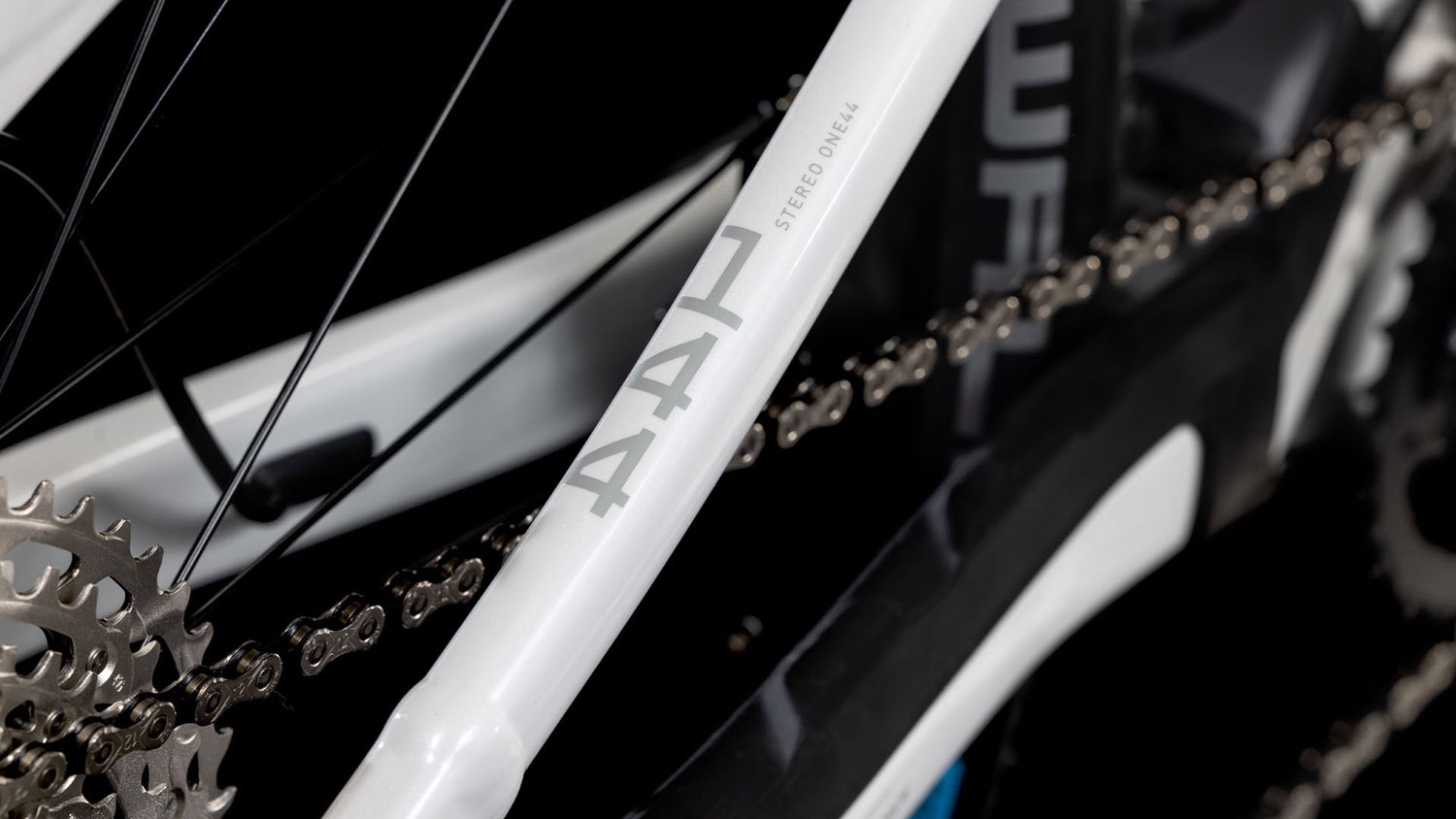 Bei der Entwicklung des Stereo Hybrid ONE44 hat Cube sich ganz stark auf Performance in Kombination mit hoher Anpassbarkeit konzentriert. Insofern ist dieses Chassis mit einem kompakten PowerTube Akku bestückt, der den optimierten, jetzt noch geräuschärmer arbeitenden Bosch CX Motor zuverlässig vorwärtstreibt. Dazu gibt’s 140 mm Federweg an der Front und am Heck sowie Montagepunkte für Schutzbleche. Dass die Kabel im Inneren verlaufen, betont die cleane, elegante Optik des Rahmens und reduziert den Wartungsaufwand auf ein Minimum. Was noch? Ein UDH Schaltauge für einfachere Ersatzteilverfügbarkeit und eine unauffällig und formschön ins Design integrierte Direct-Mount-Kettenführung. Wer einen Gepäckträger nachrüsten möchte, profitiert von den SIC 2.0 Aufnahmepunkten, und dank Size Split hat Cube für so gut wie jeden Fahrer die perfekte Passform im Angebot.