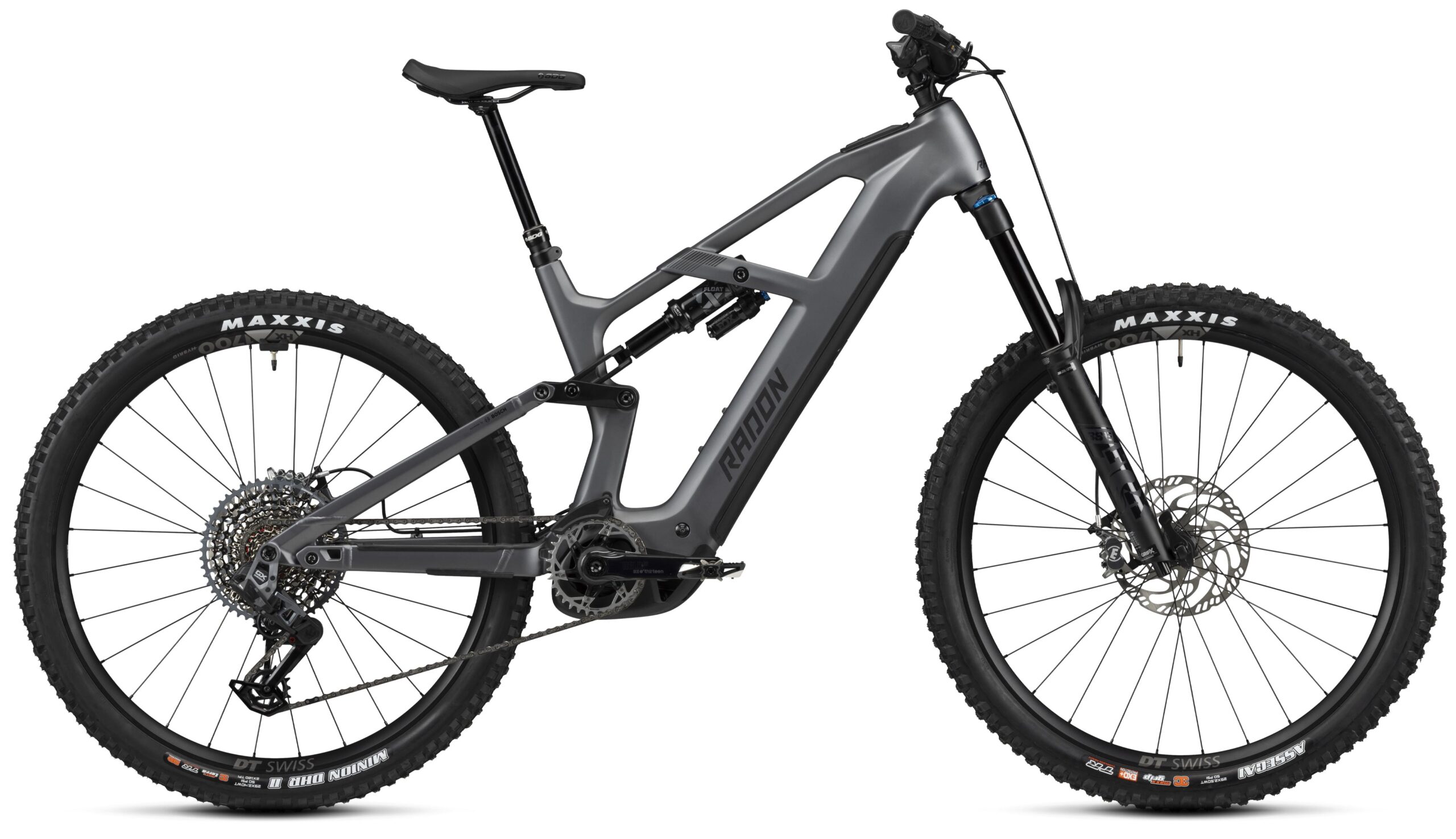 Durch die komplette Neukonstruktion ist der Bosch Antrieb noch leiser geworden und bietet in der Spitze 600 W – steilen Uphillpassagen begegnest Du ab sofort mit Freude statt Ehrfurcht. Um den Spaß bei der anschließenden Abfahrt zu maximieren, haben wir ein Fox Fahrwerk aus der Performance Elite Serie verbaut. An der Front werkelt die potente Fox 38 mit neuer FIT GRIP X Kartusche: Einstellbare Highspeed- und Lowspeed-Druckstufe sowie Lowspeed-Zugstufe sorgen für Freudestrahlen bei allen Enduristen. Komplett überarbeitet ist auch der 3-Wege-Einsteller, mit dem man schnell in den Firm-Modus für ein straffes Fahrwerk für lange Uphills wechseln kann. Der Fox Float X Performance Elite übernimmt die Arbeit am Heck und wird den nächsten Wurzelteppich sanft entschärfen. Bei der Schaltung setzen wir auf die elektronische SRAM GX Transmission mit edlen Pod Controllern am Lenker: Dank Rocker Paddles hast Du die gewohnte Ergonomie von mechanischen Shiftern mit der Schnelligkeit elektronischer Schaltungen vereint. Die Verzögerung übernimmt die bärenstarke Magura MT7 der Bremsspezialisten aus Bad Urach. Die Bremskraft ist über jeden Zweifel erhaben, ohne dabei Minuspunkte bei der Modulation zu sammeln. Die Verbindung zum Trail bietet der edle DT Swiss HX1700 mit 30mm Maulweite und neu gestalteter 350er Nabe. Bei den Pneus haben wir uns für die preisgekrönte Kombination aus Maxxis Assegai mit weicher MaxxGrip Gummimischung und leichter EXO+ Karkasse an der Front und robustem Maxxis Minion DHR II in härterer MaxxTerra Mischung und solider Double Down Karkasse am Heck entschieden. Egal ob flowiger Trail oder steil verblockter Singletrail – mit dieser Kombination bis Du bestens aufgestellt. Abgerundet wird unser Bestseller mit einem feinen Race Face Turbine R Cockpit und anpassbarer SDG Tellis V2 Sattelstütze mit bis zu 170mm Hub. Das DEFT 9.0 – braucht man mehr?