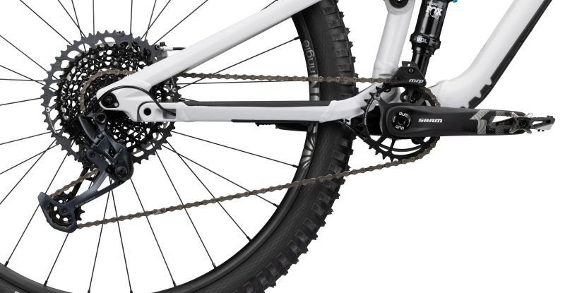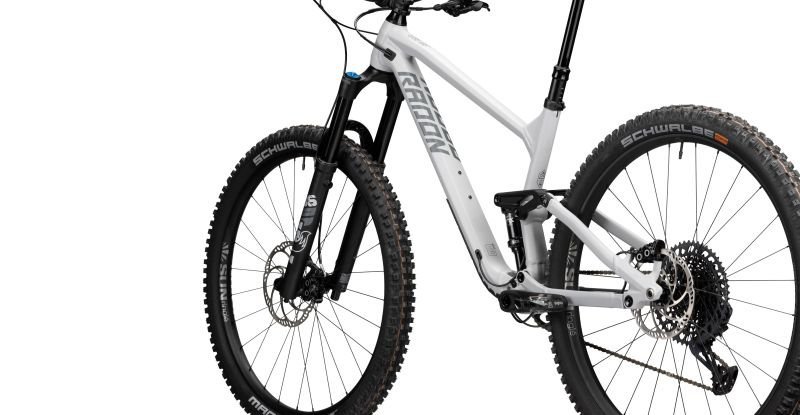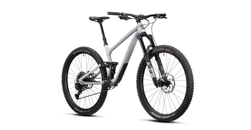Die Zutaten bestehen aus einem kompletten Fox Fahrwerk mit einer 150mm Fox 36 Performance Federgabel und dem Fox Float DPS Performance Dämpfer mit 140mm Federweg. Das bedeutet, dass für ausreichend Reserven gesorgt ist, um auch in grobem Gelände spielerisch den Trail hinab zu fliegen. Den Berg wieder hinauf geht es mit Hilfe eines SRAM Antriebs aus Komponenten der 12-fach SRAM Eagle Schaltgruppe, die für ihre zuverlässigen und knackigen Gangwechsel bekannt ist und für jeden Grad an Steigung oder Gefälle die passende Übersetzung anbietet. Und da der aufgenommene Speed leider auch irgendwann wieder abgebaut werden muss – manchaml auch sehr abrupt – , haben wir dem SLIDE TRAIL AL 8.0 vorne und hinten eine Magura MT5 Vierkolben Bremsanlage spendiert, die gut mit dem Rahmen und dem Fahrwerk harmoniert und durch gute Dosierbarkeit und starke Bremspower dem Fahrer die benötigte Sicherheit gibt. Die Wahl der Reifen aus dem Sortiment von Schwalbe fiel auf den bissigen Magic Mary für die Front und den beliebten Big Betty am Heck, jeweils mit ADDIX Soft Gummimischung und Super Trail Karkasse – also mit mächtig Grip und Kontrolle bei unterschiedlichster Bodenbeschaffenheit. Die SUNringlé Düroc 35 Expert Systemlaufräder stellen einen hervorragenden Kompromiss aus Stabilität und Gewicht dar und runden so die Ausstattung des SLIDE TRAIL AL 8.0 ab, die konsequent auf puren Fahrspaß ausgerichtet ist!