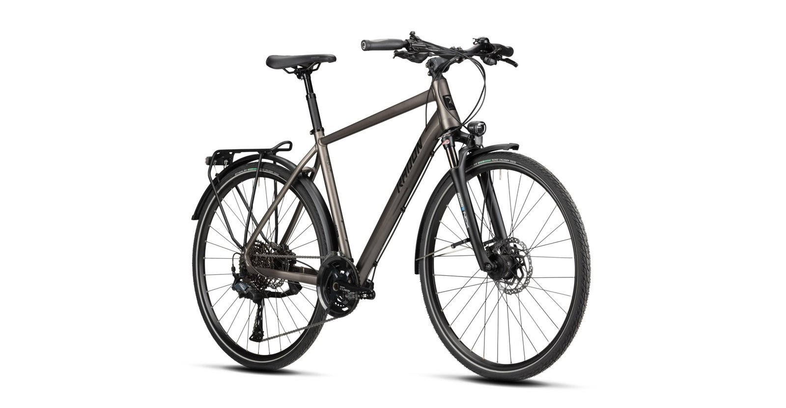 Bei der 2×11 Schaltung setzen wir auf die brandneue Shimano CUES Gruppe, schnelle Gangwechsel, erstklassige Verarbeitung und eine äußerst hohe Langlebigkeit sind damit garantiert. Dank hoher Bandbreite steht Dir fortan immer der richtige Gang zur Verfügung. Die hydraulischen Shimano BR-MT200 Bremsen sorgen für zuverlässige Verzögerung, vor allem auch bei Abfahrten mit Topspeed. Der schwebend anmutende Gepäckträger ist für die Mitnahme von Gepäcktaschen vorbereitet und mit formschönen Schutzblechen kombiniert und stellt so optisch und funktionell ein weiteres Highlight dar. Zur edlen Vollendung setzen wir auf eine hochwertige Busch & Müller Lichtanlage mit dem Lumotec IQ-XS Light N plus an der Front und dem Toplight 2C am Heck – natürlich durch einen Nabendynamo gespeist. In puncto Komfort bietet das Modell den bequemen Natural Fit Sequence Sattel auf einer gefederten Satori Harmony-LT2 Sattelstütze – eine Kombination, die besonders auf langen Touren begeistert. Mit dem SOLUTION COMFORT 9.0 kann die Reise beginnen – ein Fahrrad, das höchste Ansprüche erfüllt!