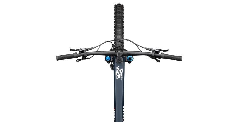Die Vorgaben bei der Entwicklung für das SWOOP in der Carbon Variante waren klar – frisches Design, moderne Kinematik und neue Dämpferanlenkung. Herausgekommen ist ein leichter und steifer Carbon Hauptrahmen mit einem soliden Aluminium Hinterbau. Da ist kein Stein auf dem alten geblieben. Progressive Geometrie, 29″ Laufräder, Möglichkeit der Geometrieverstellung, 170mm Federweg – hier wurden keine Kompromisse eingegangen! Die Kinematik erlaubt selbst Coil Dämpfer. Für eine hohe Wendigkeit haben wir die Kettenstreben mit 438mm kurz gehalten und trotz des langen Radstands, sowie dem flachen Lenkwinkel sind sogar enge Kurven ein Kinderspiel. Das Highlight bietet der drehbare Steuersatz, welcher den Steuerwinkel um 1.5 Grad verändern kann.