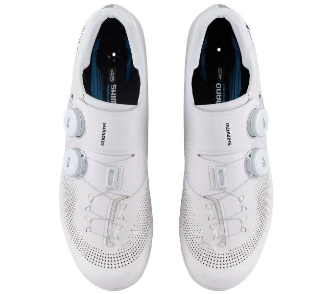 Der Shimano SH-RC703 Rennradschuh ist ein leistungsstarker Road-Competition-Schuh, der mit S-PHYRE DNA ausgestattet ist und höchsten Ansprüchen gerecht wird. Die hohle Carbon-Zwischensohle sorgt durch ihre hohe Steifigkeit für maximale Kraftübertragung, effiziente Belüftung und schnelles Wasserablaufen.Dank der schlanken, flachen Crossover-Schnürung wird der Vorderfuß sicher und elegant fixiert, während das BOA®-Einstellsystem mit zwei L6Z Drehverschlüssen einen präzisen und individuellen Sitz ermöglicht.